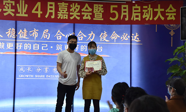 易視界4月優(yōu)秀店務(wù)標(biāo)兵獲得者上臺領(lǐng)獎